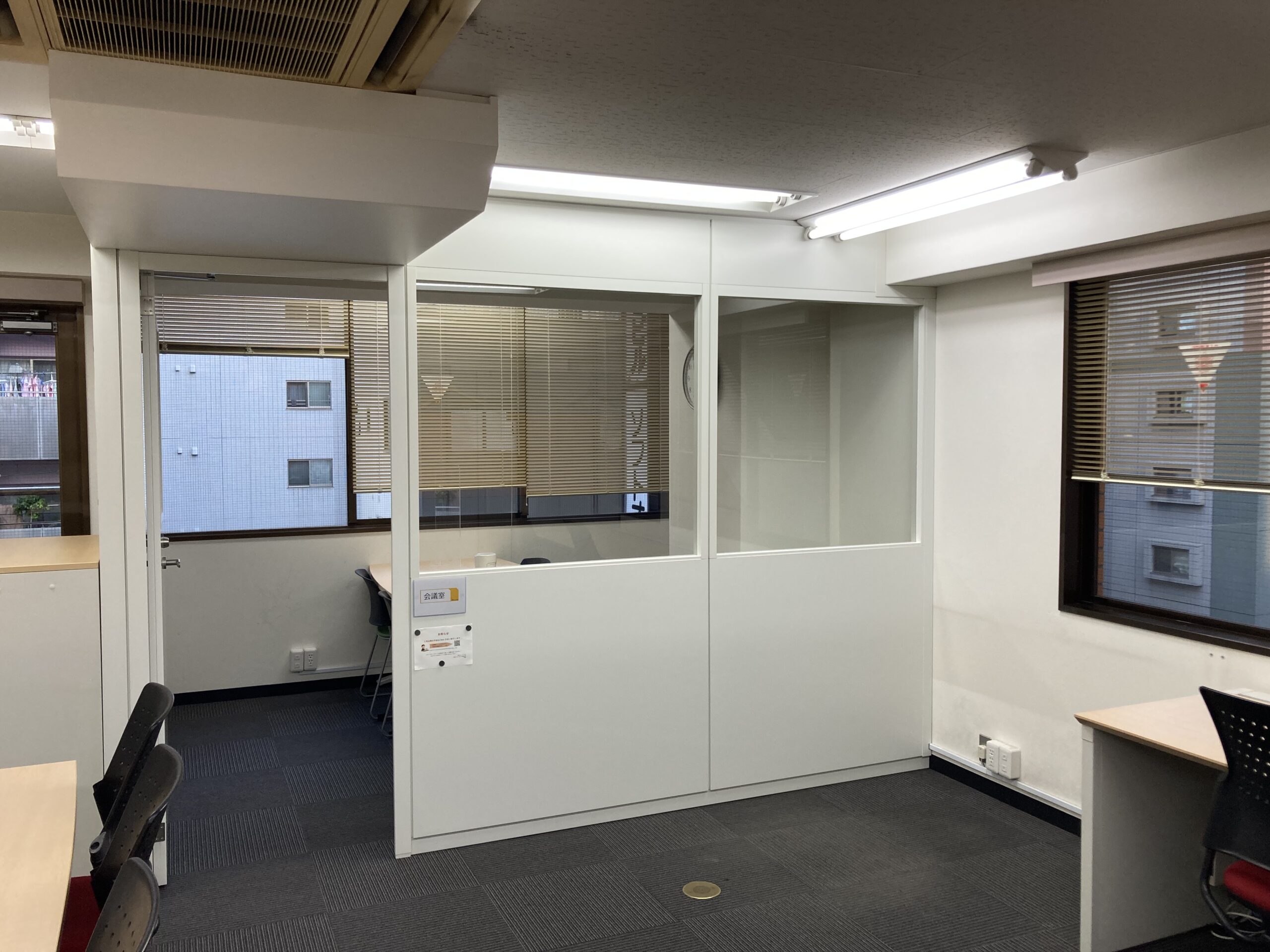 多摩ソフトウエア有限会社様が神田に入居者様のご希望に応じ、オンライン会議用の密閉型スペースを施工しました。エアコン設備のないスペースに、天井内ダクト分岐ができない機種の為、エアコン送風口から箱型ダクトでパーテーション内に冷気を送り込む施工を行いました。