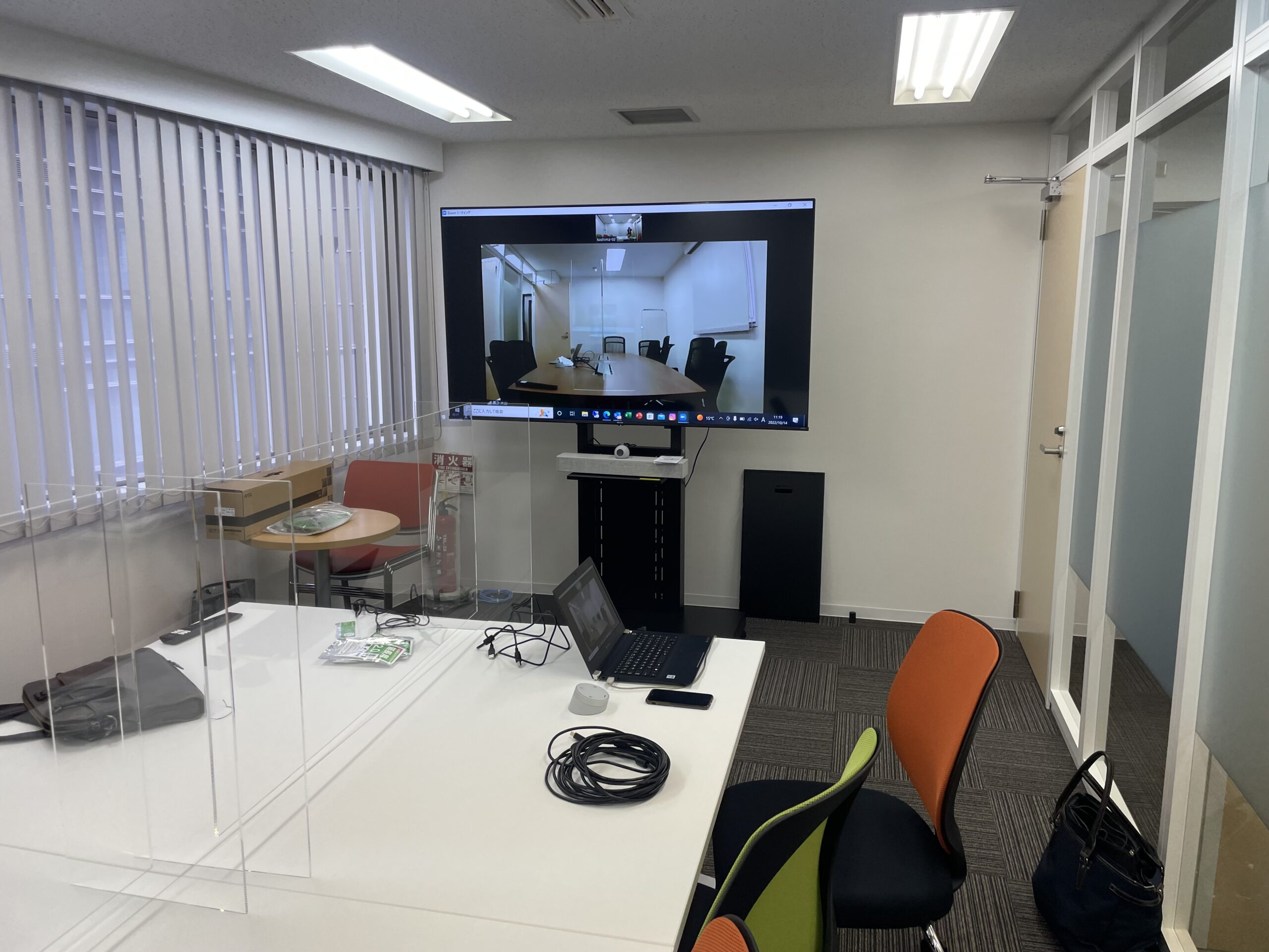 令和4年初に3階事務所フロアを全面リニューアル工事をご注文頂きましたが、業務拡大に伴い、同ビル6階にオフィスを増床され、執務室・会議室・倉庫のレイアウト提案・什器納品・フロア間インフラ工事を承りました2つの会議室にはそれぞれのオンライン会議に対応するWEB会議用システム(acendovibe)を納品設置させていただきました。