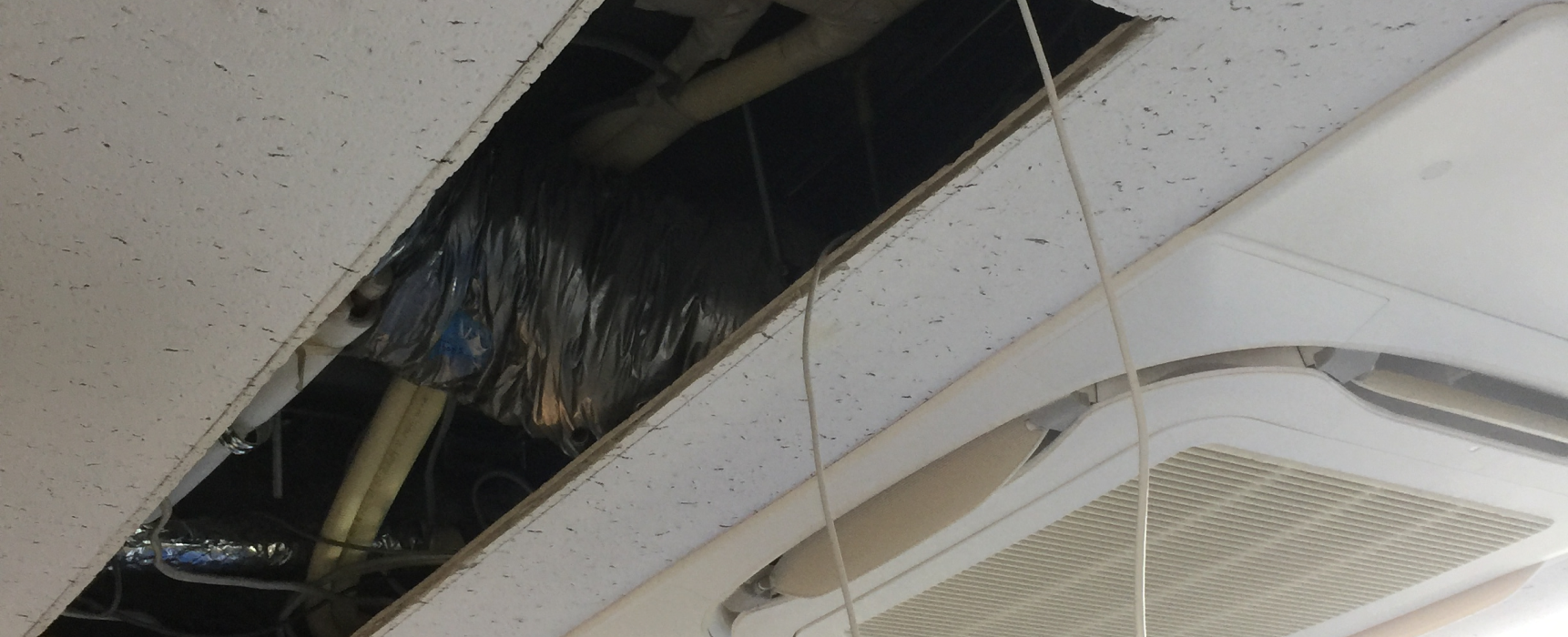 令和4年4月より、一定規模の内装工事(新規・改装)について、関係する建材のアスベスト事前含有検査の報告が義務化されました。